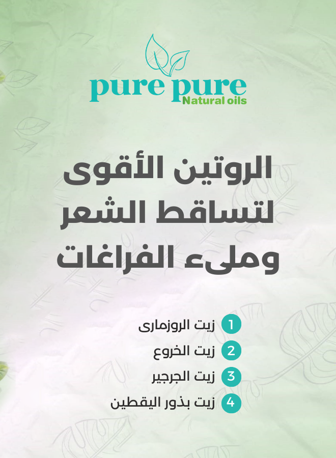 تقدم بيور – بيور للزيوت الطبيعية الروتين الاقوى لعلاج تساقط الشعر واعادة ملء الفراغات ، وهو يتكون من 4 زيوت اثبتت فعاليتها بالتجربة، وهي:
